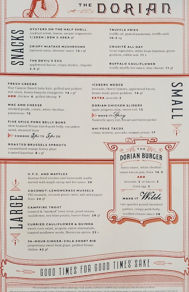 Whether you're looking to indulge in a delectable meal or simply enjoy a casual evening out, head to The Dorian for a taste of elevated American cuisine that promises to delight the senses. Don’t forget to make a reservation if you can, as this place tends to fill up fast with locals and visitors alike!