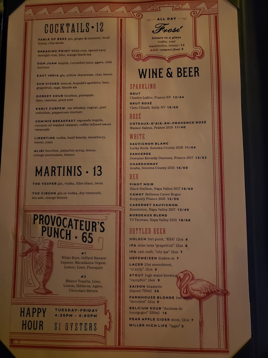 Customer reviews reflect the positive experiences that diners have had at The Dorian. Cindy Sawyer praises the “awesome happy hour menu” with tempting small bites and impressively fresh oysters priced at just $1.75 each. Avi D described finding a hidden gem in the bustling area with great drinks and an energetic atmosphere. Meanwhile, Alina Ferguson shared a memorable birthday experience, emphasizing the attentive service from staff like Olivia, who contributed to an overall exceptional dining experience.